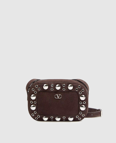 Коричнева шкіряна сумка з емблемою VLogo Signature