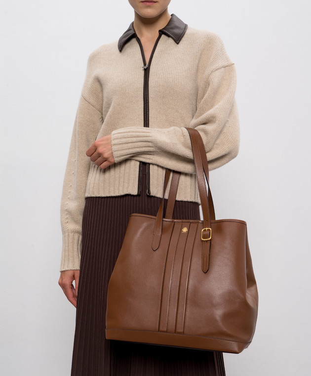 Коричнева шкіряна сумка-тоут з логотипом