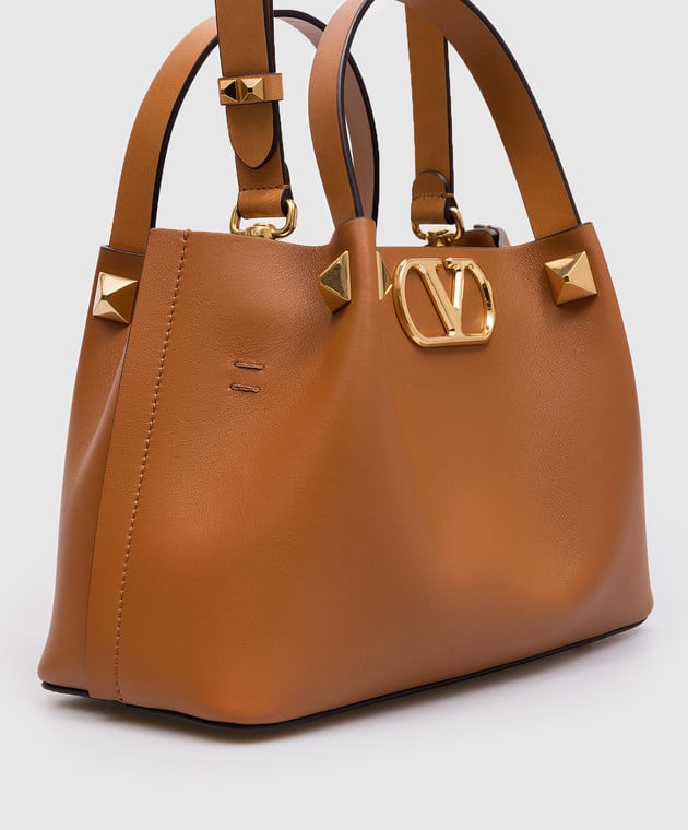 Коричнева шкіряна сумка-тоут з логотипом