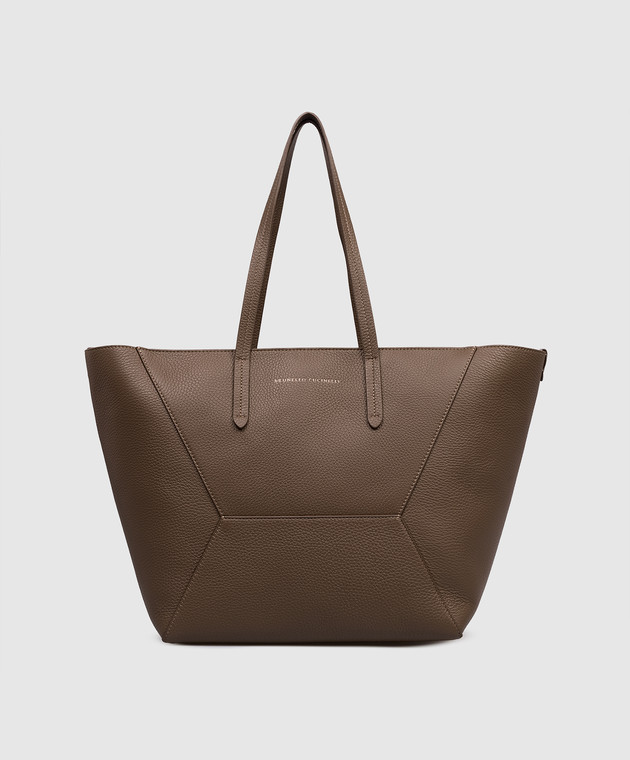 Коричнева шкіряна сумка-тоут з принтом логотипа