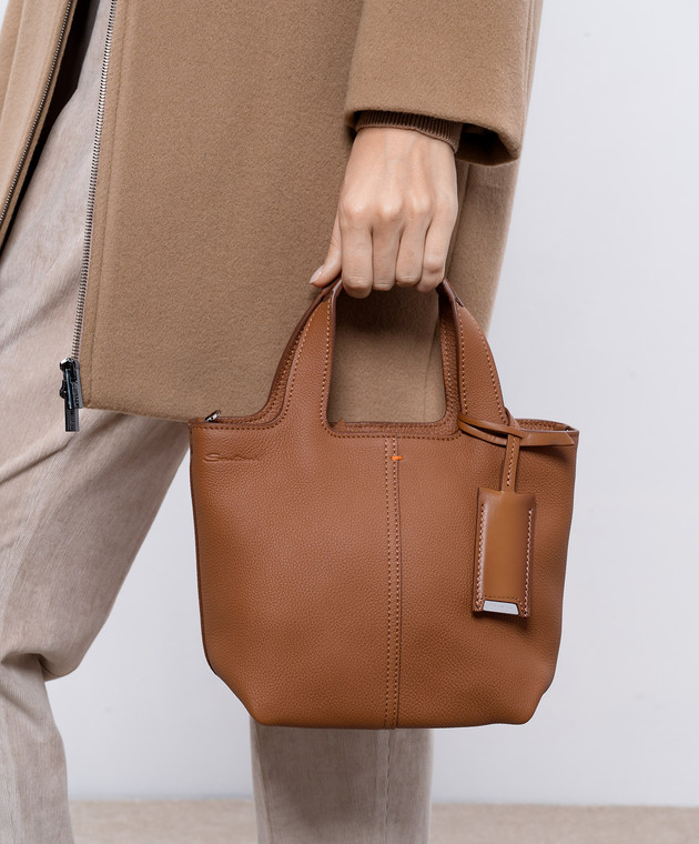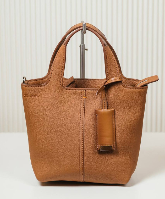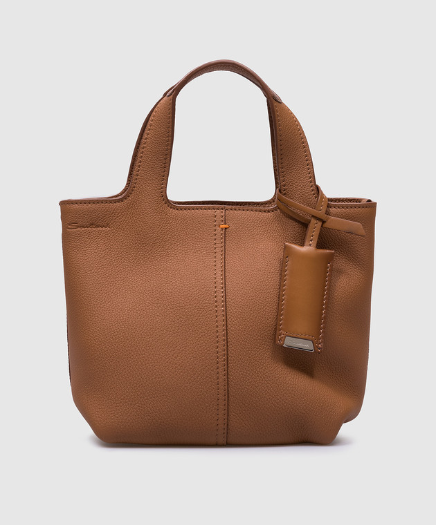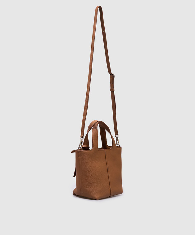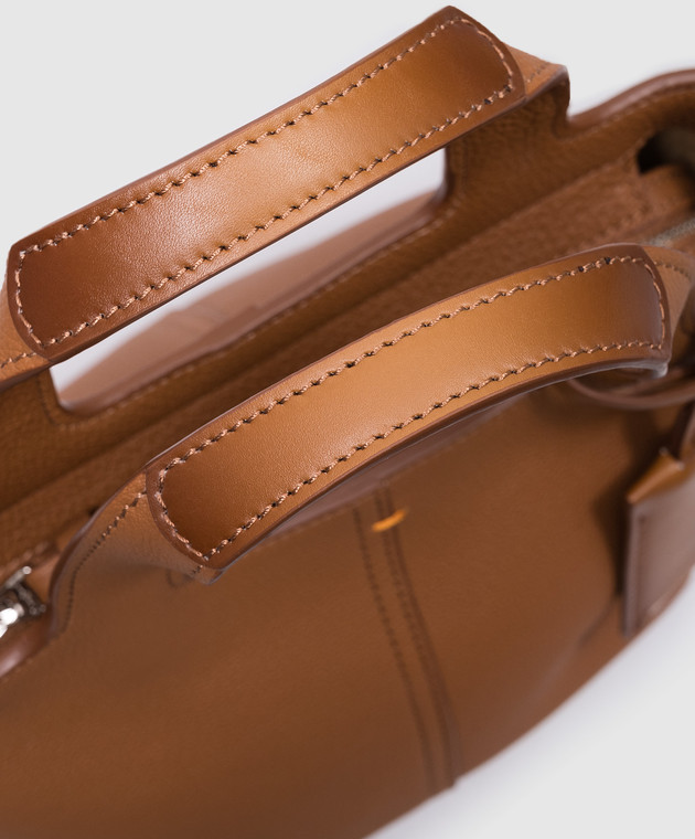 Коричнева шкіряна сумка-тоут з тисненням логотипа з металевим люстерком