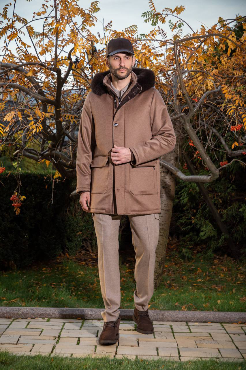 Коричнева куртка з кашеміру та вовни з хутром лисиці