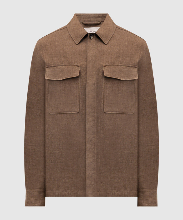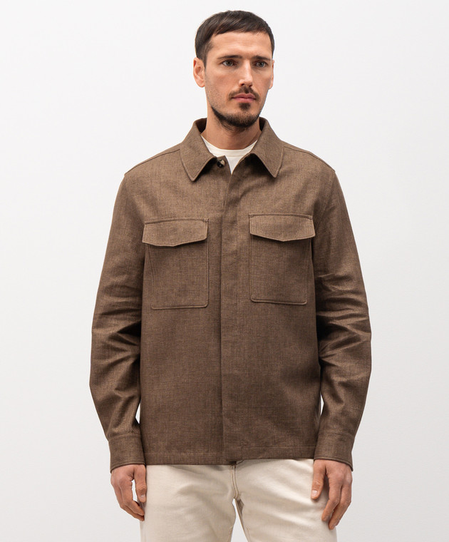 Коричнева куртка з льону в стилі сорочки