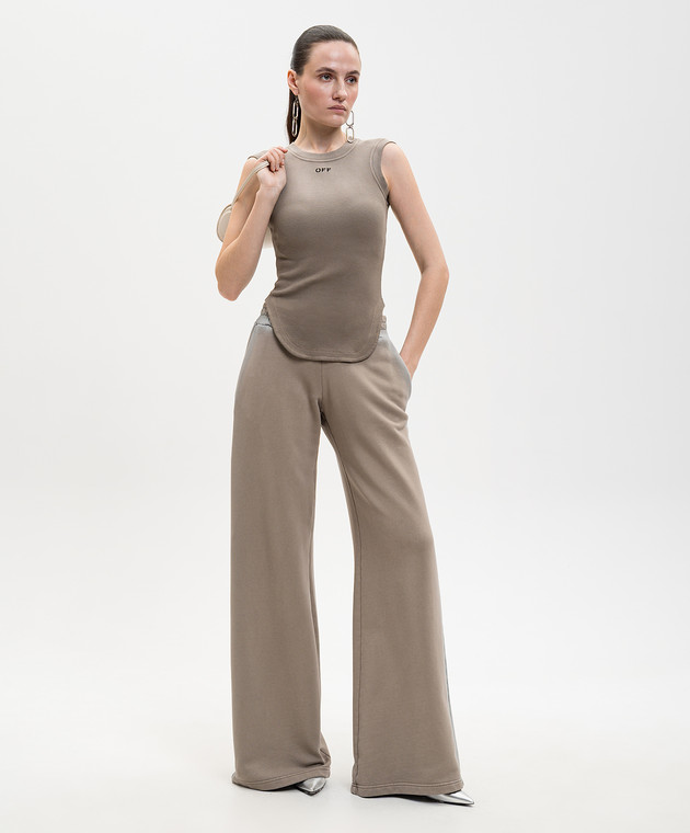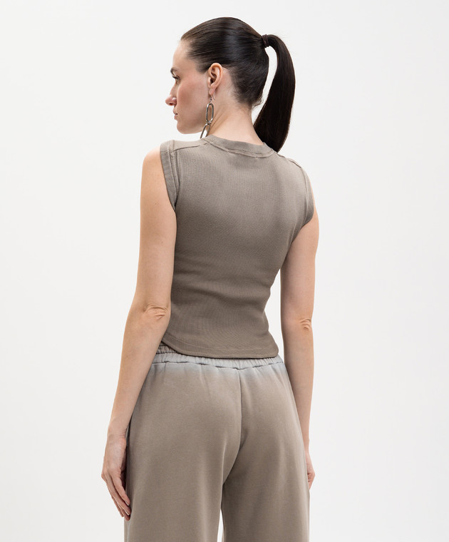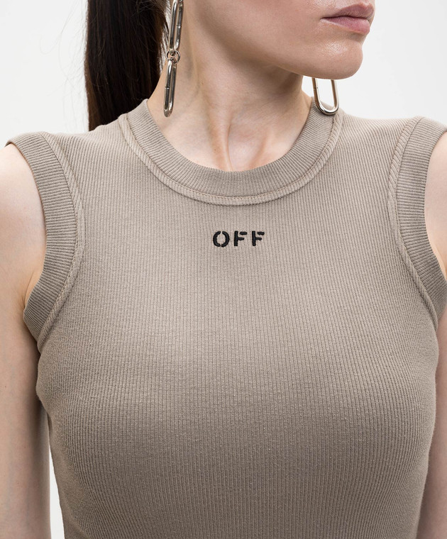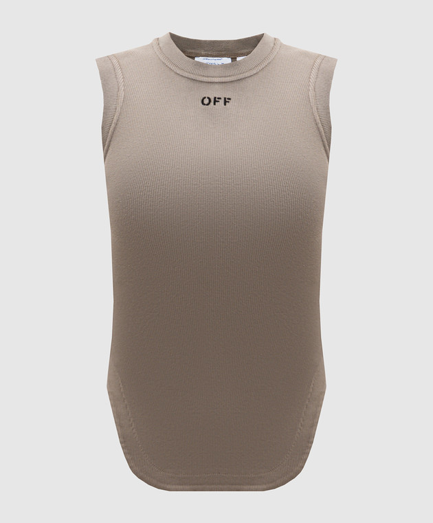 Коричнева майка в рубчик з вишивкою логотипа