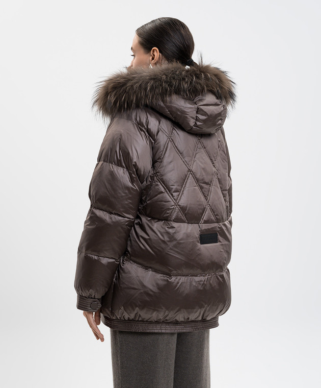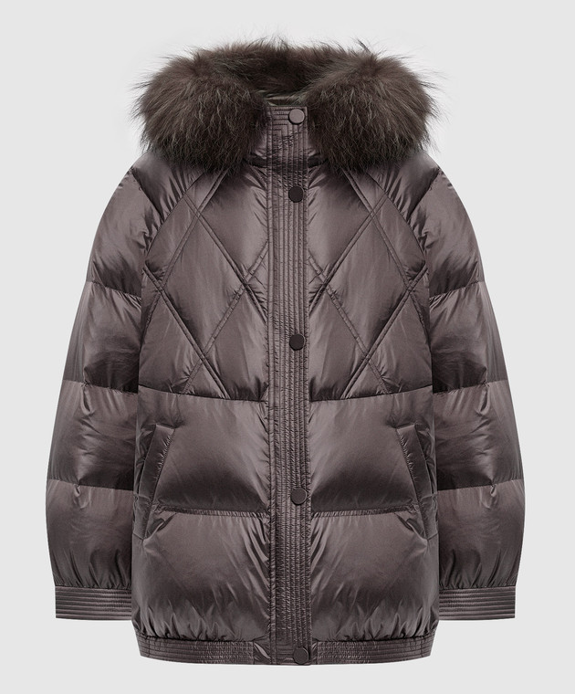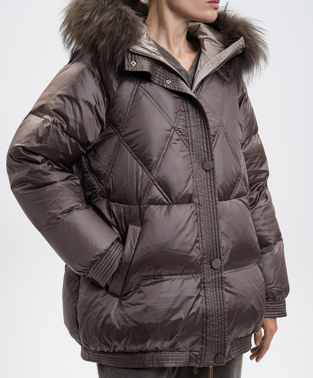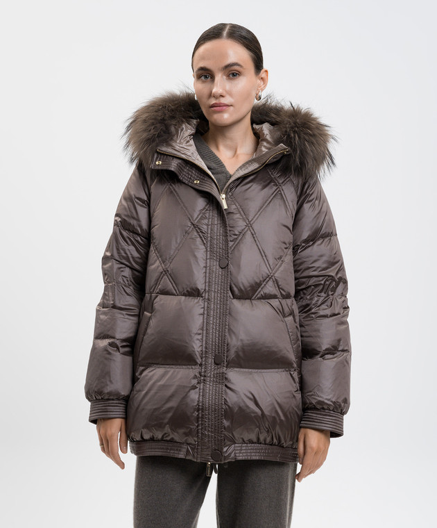 Коричнева пухова куртка з хутром лисиці