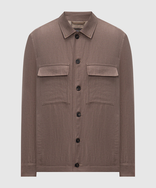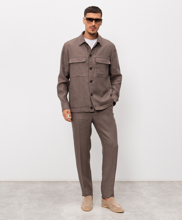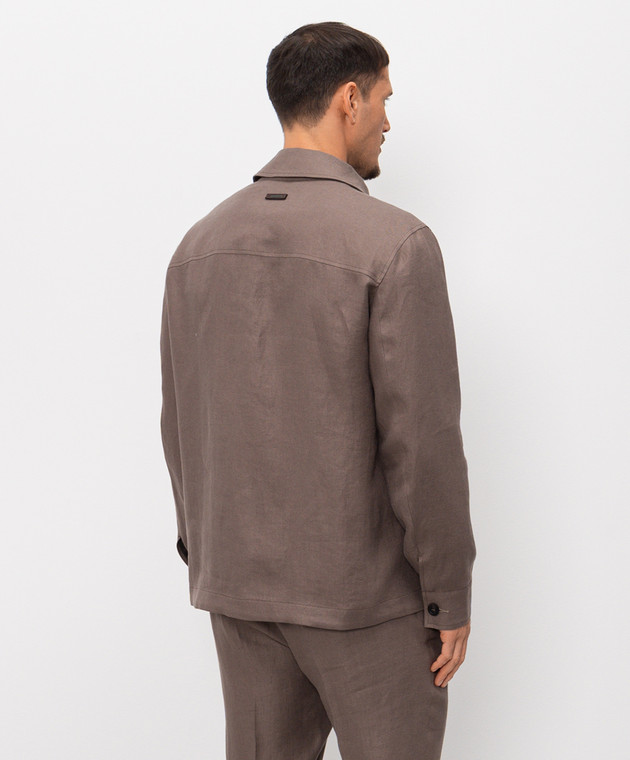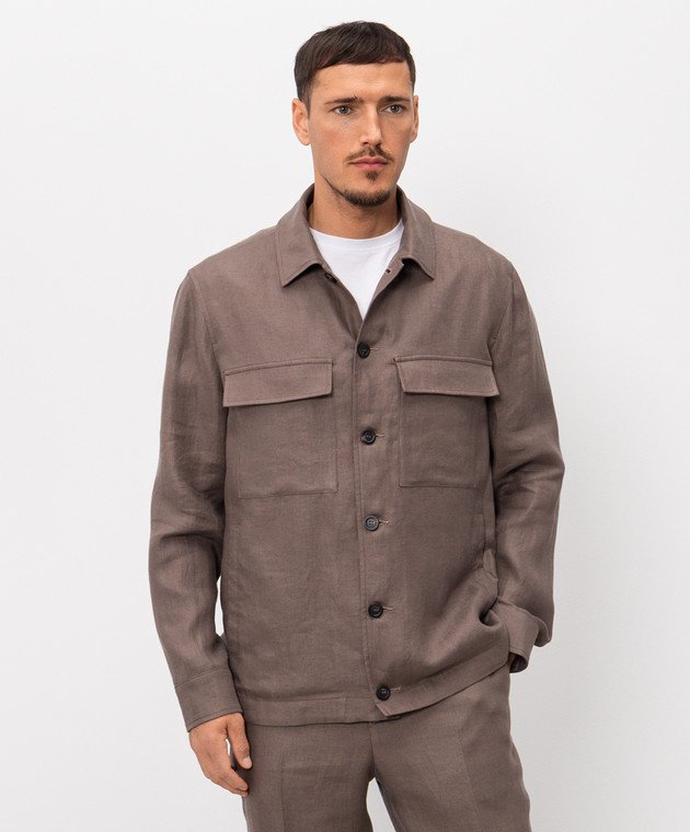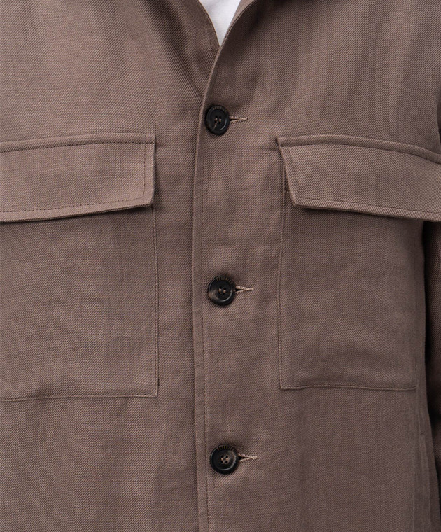 Коричнева сорочка з льону з нашивкою логотипа