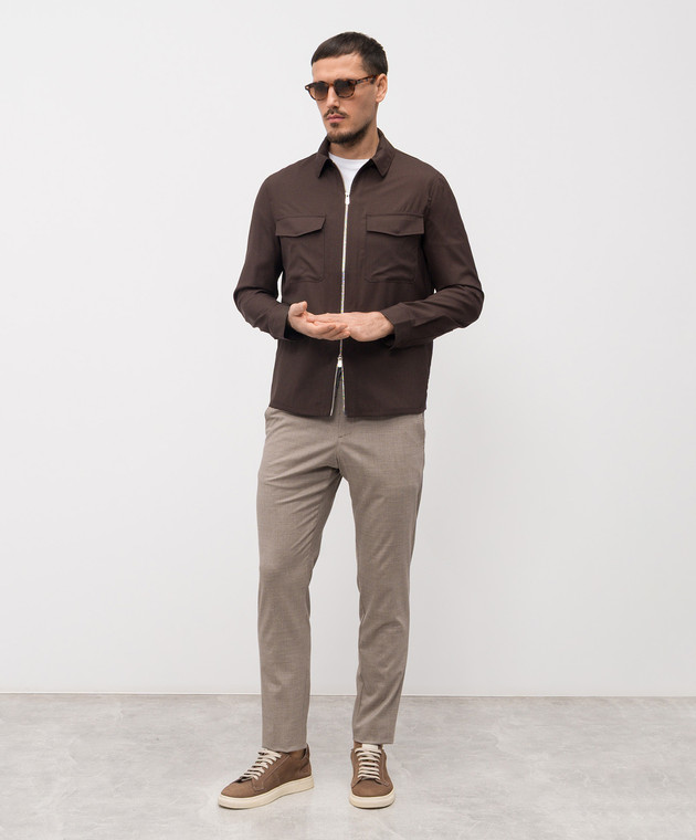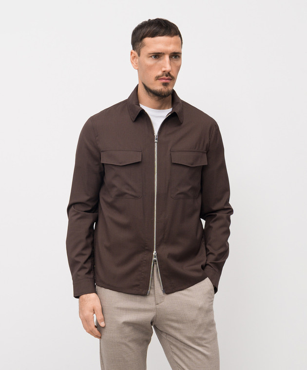 Коричнева сорочка з вовни та шовку