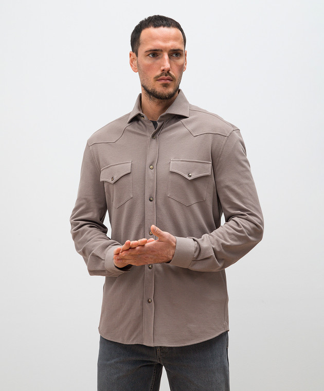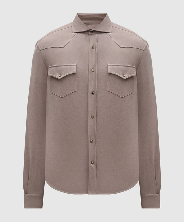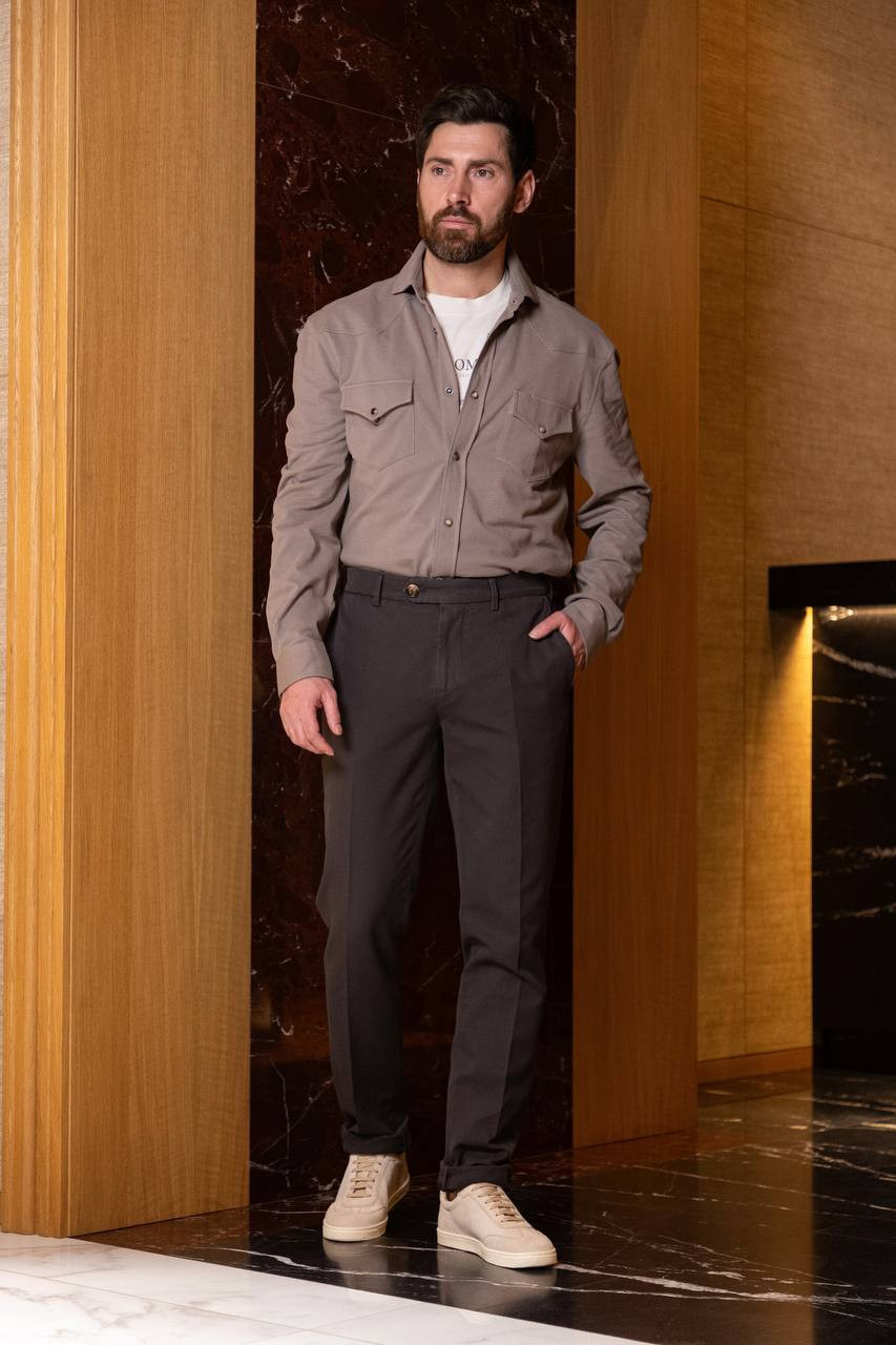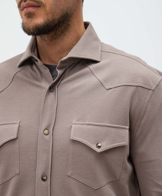 Коричнева сорочка з кишенями