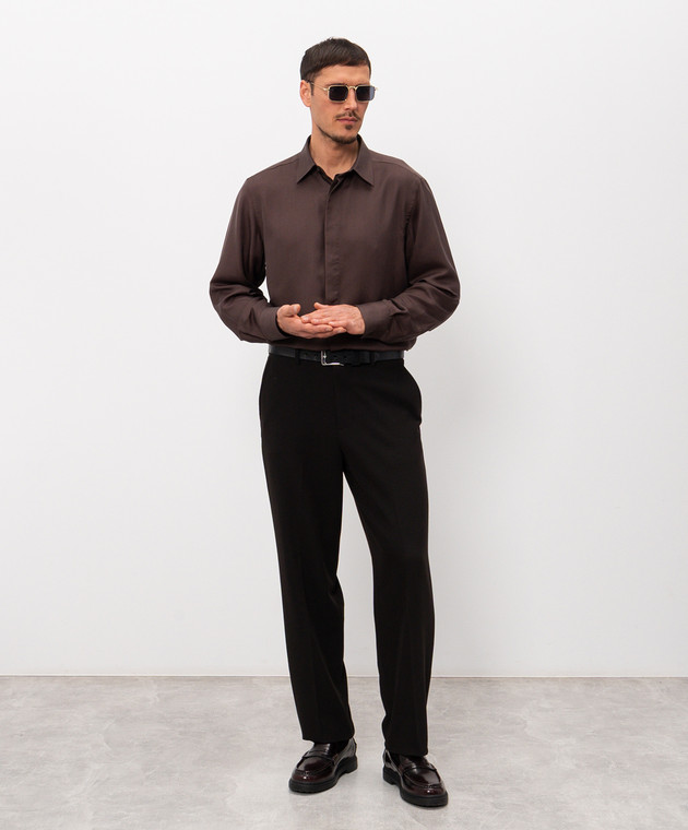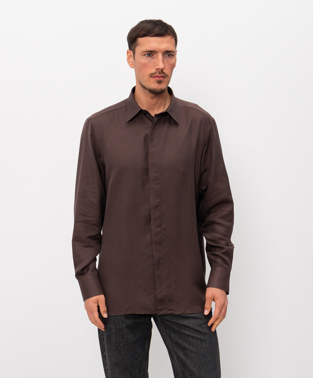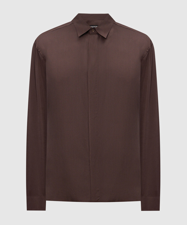 Коричнева сорочка з шовком