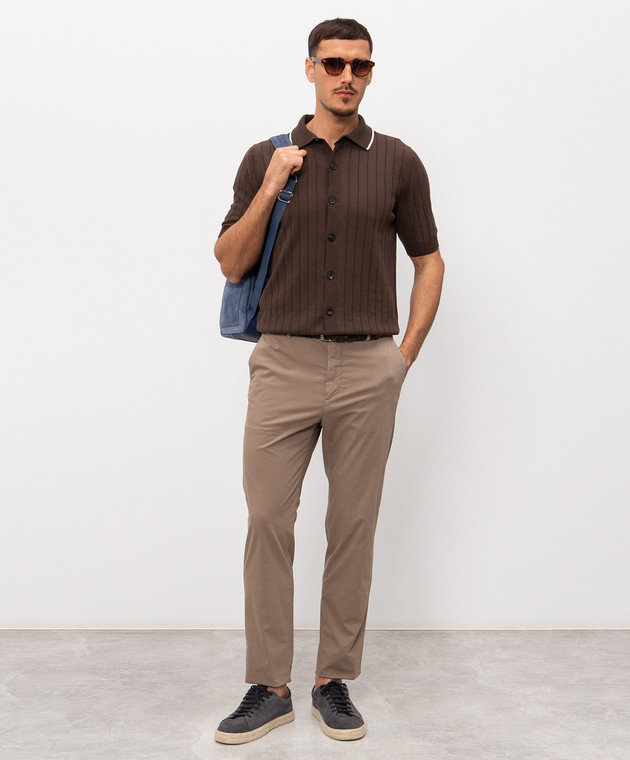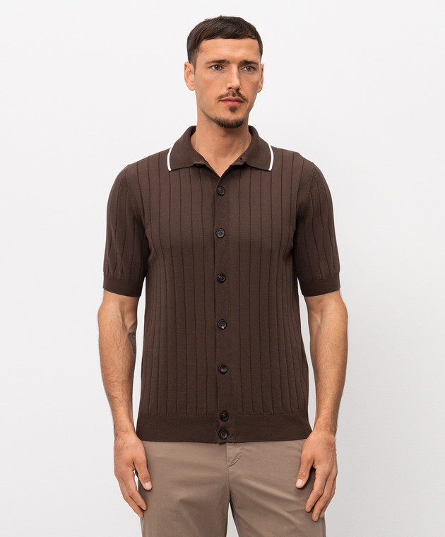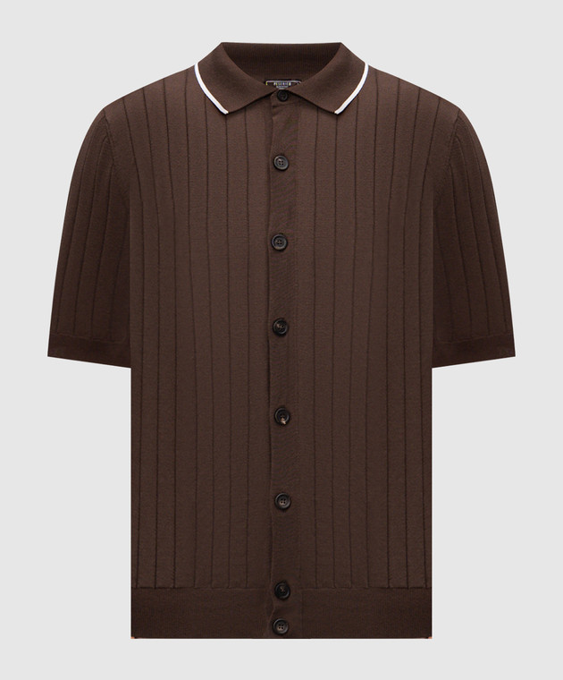 Коричнева сорочка в рубчик з короткими рукавами