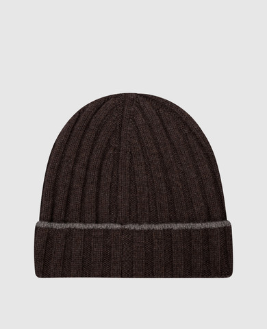 Brunello Cucinelli Коричнева шапка з кашеміру в рубчик M2293900