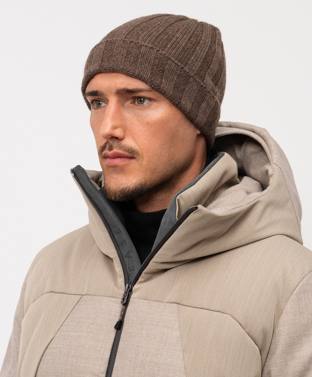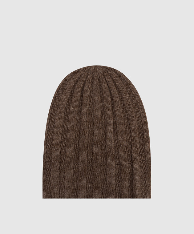 Коричнева шапка в рубчик з кашеміру