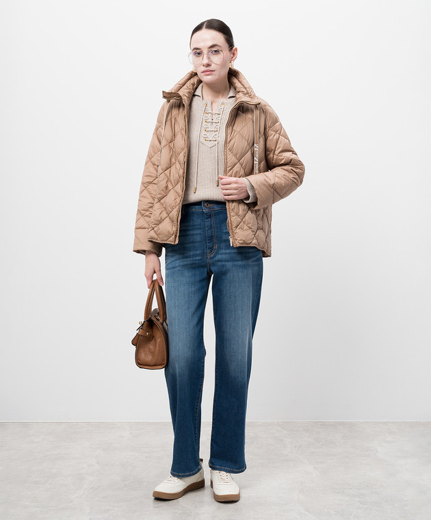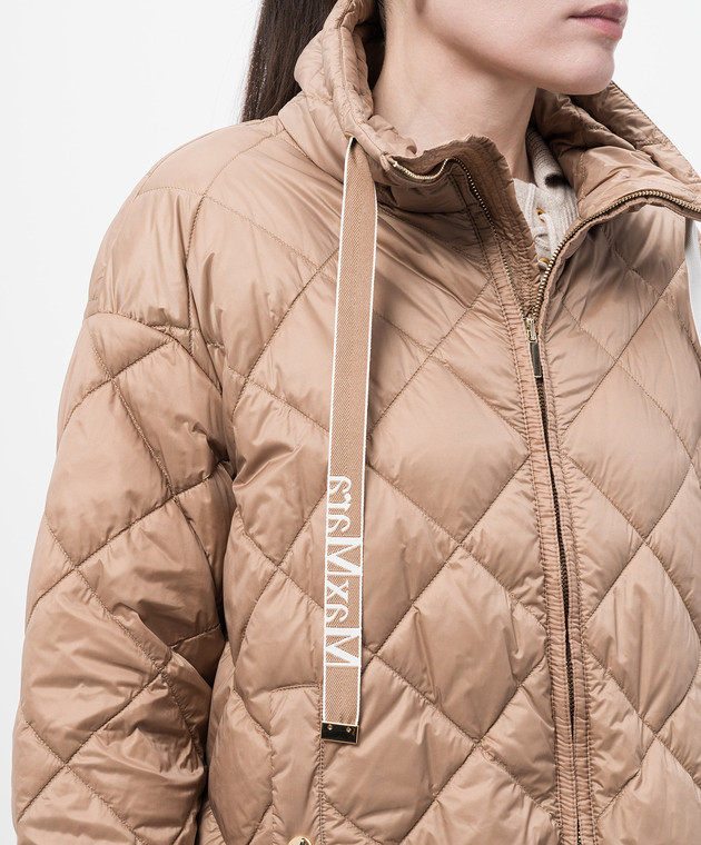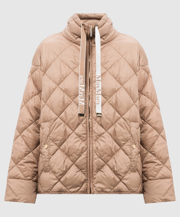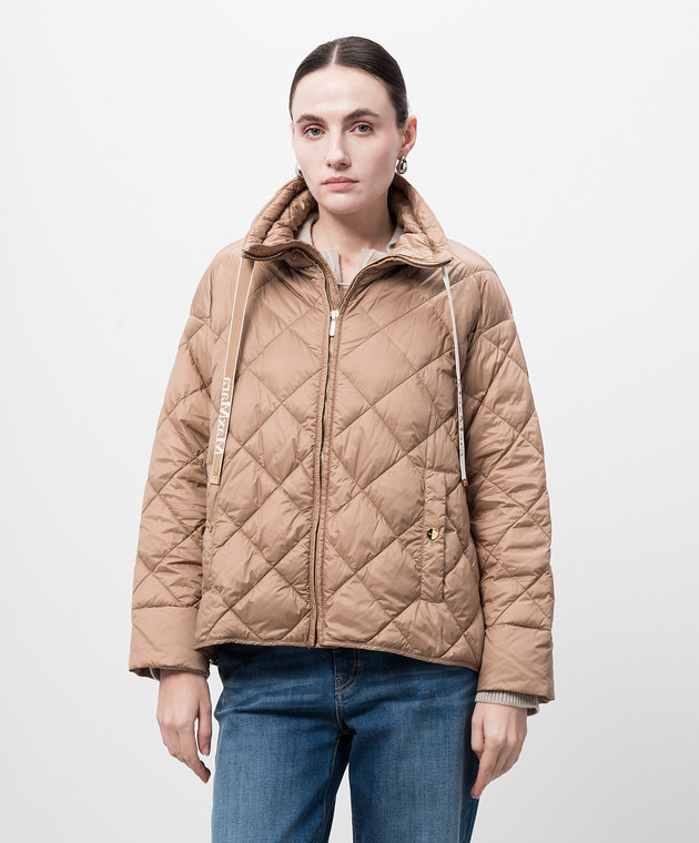 Коричнева стьобана пухова куртка PISOFT з логотипом