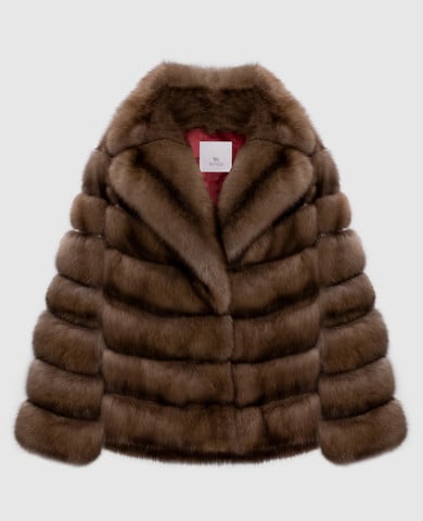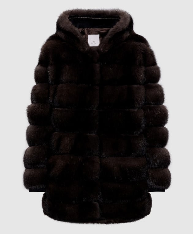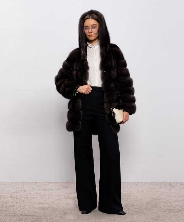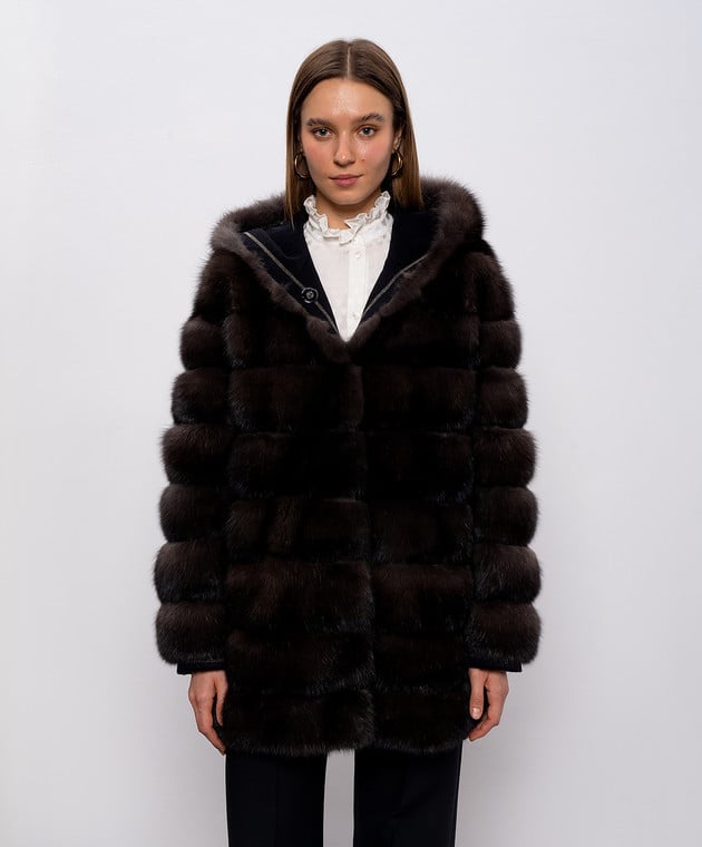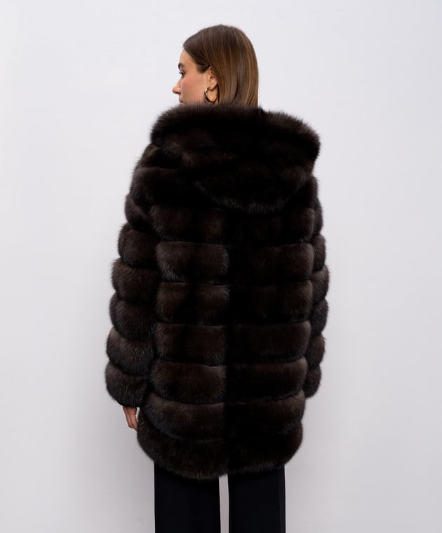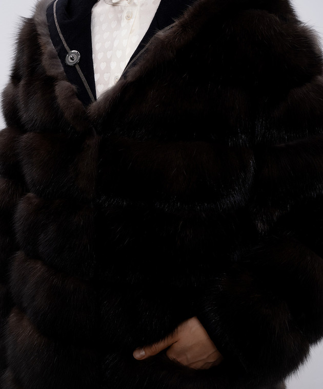 Коричнева шуба з хутра соболя з ланцюжком моніль