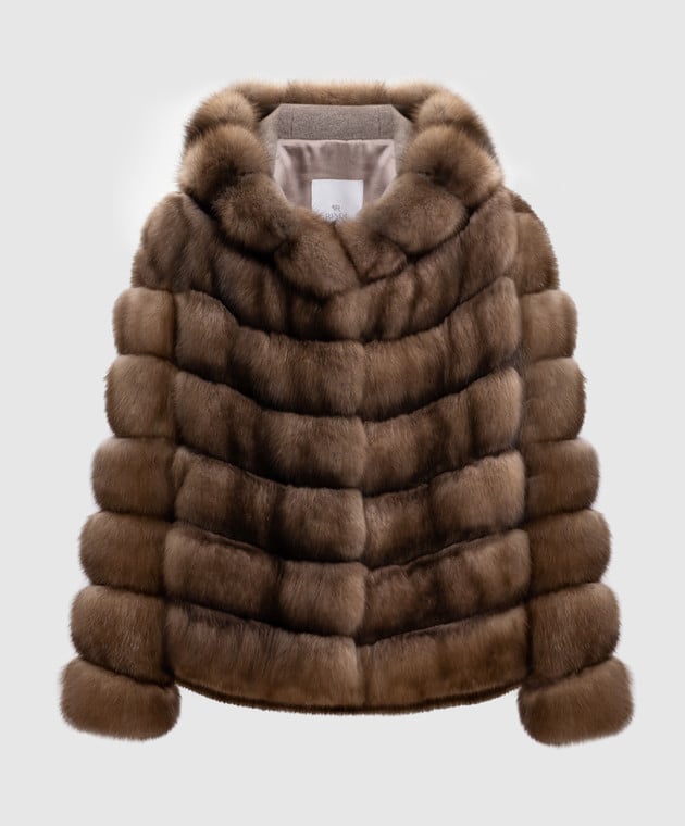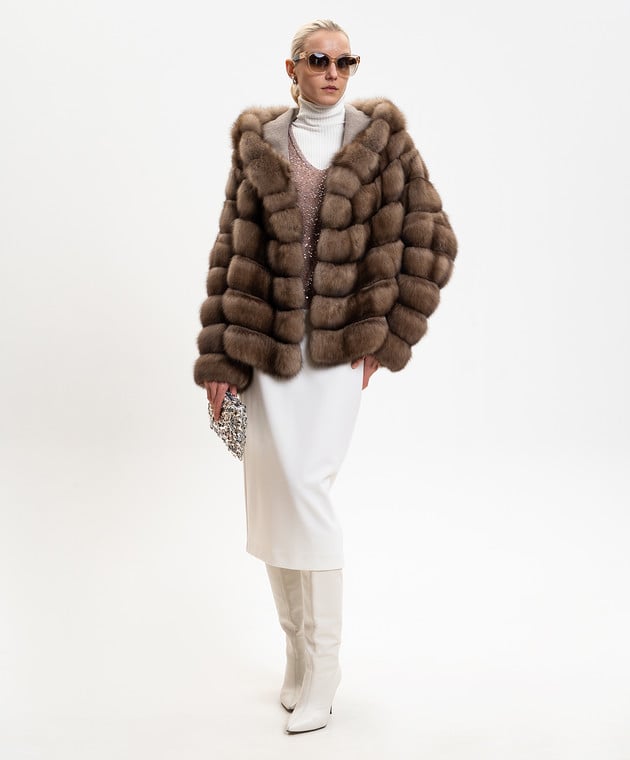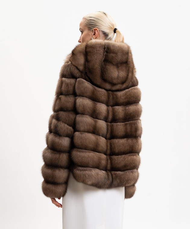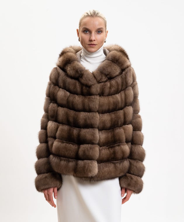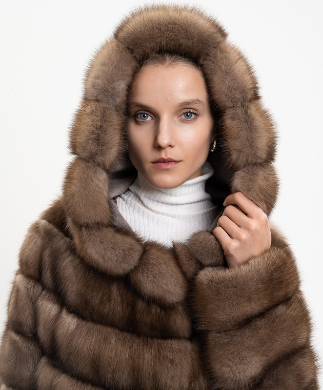 Коричнева шуба з хутра соболя з капюшоном