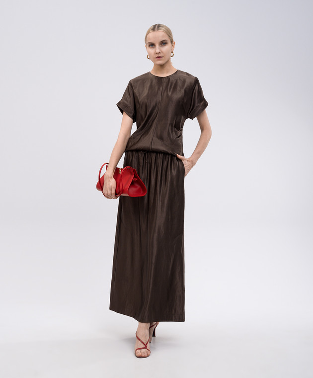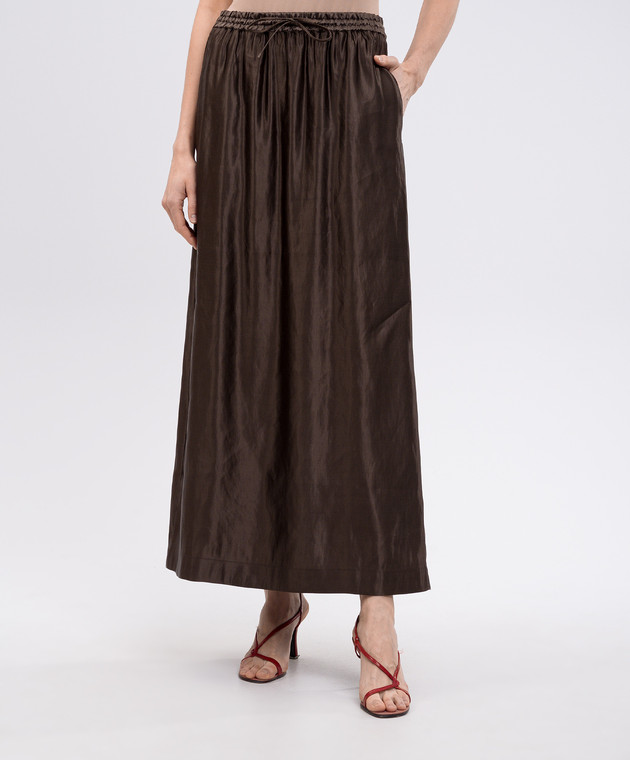 Коричнева спідниця LIAM з льону та шовку