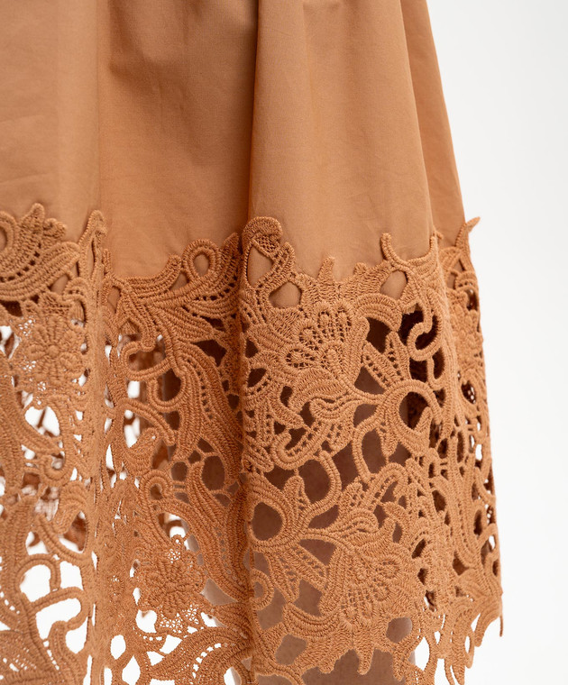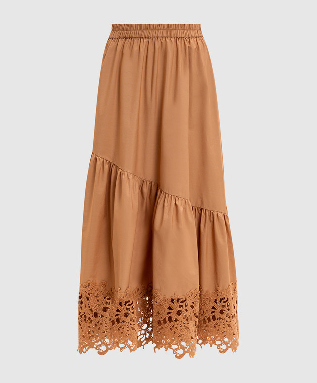 Коричнева спідниця міді з оборкою