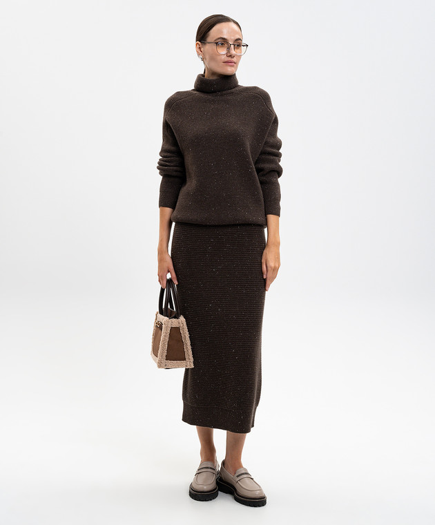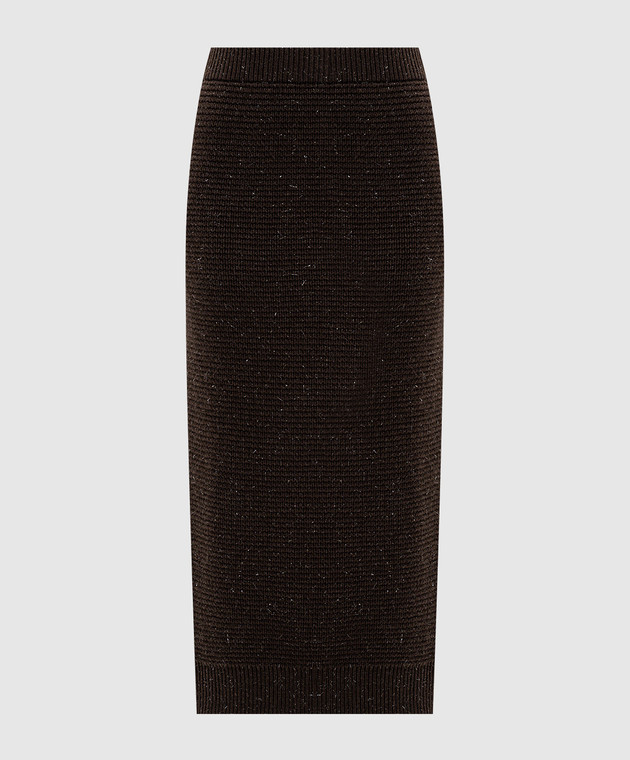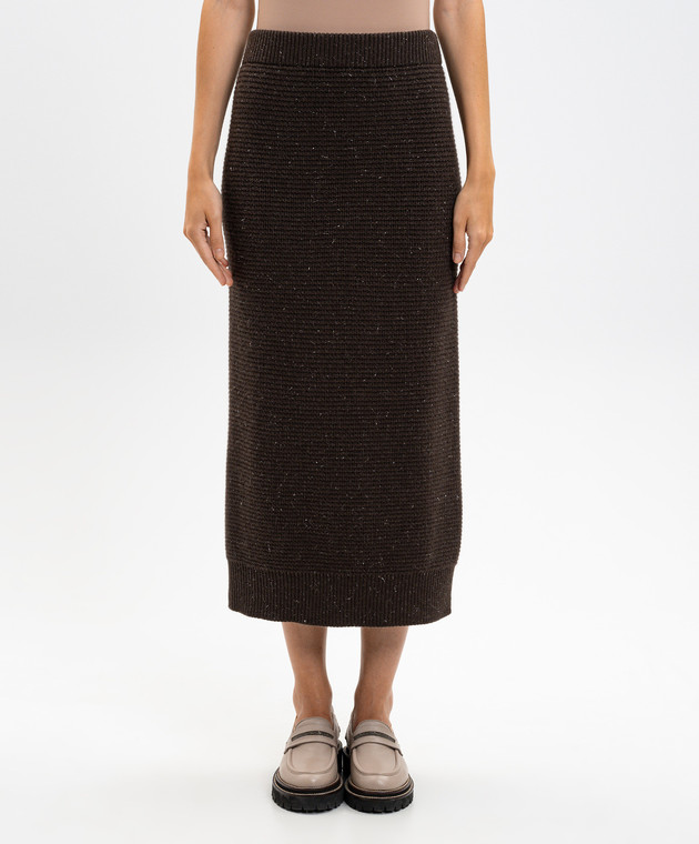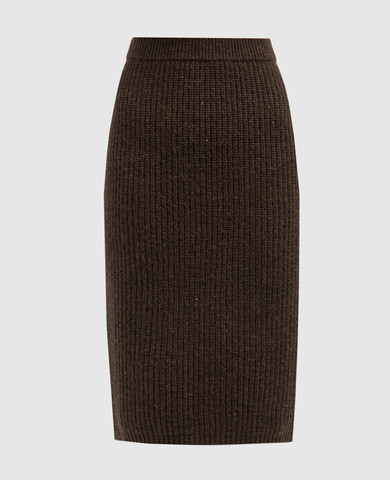 Коричнева спідниця міді з вовною та шовком
