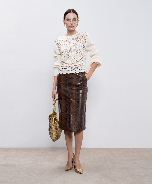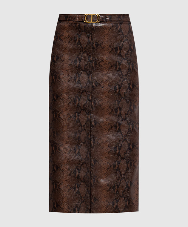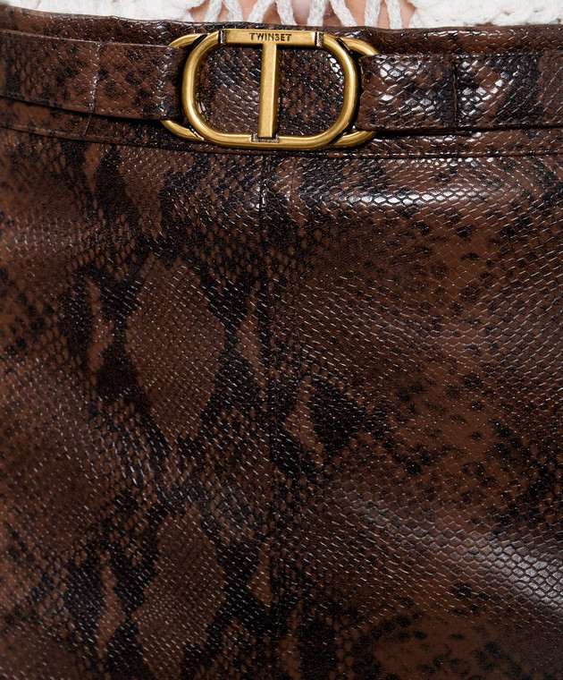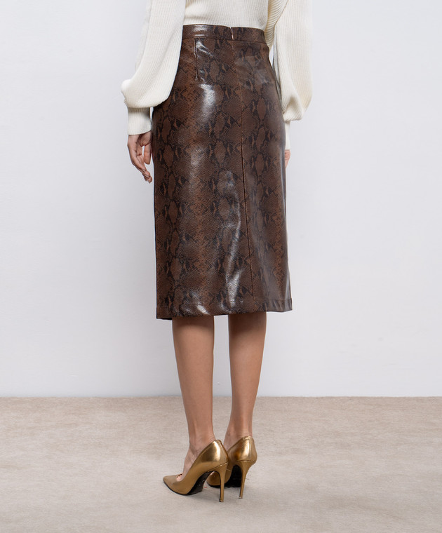 Коричнева спідниця міді з тисненням під шкіру рептилії