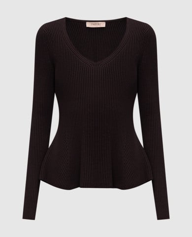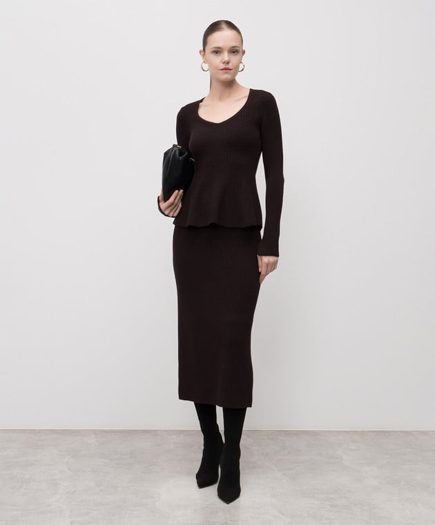 Коричнева спідниця з вовною в рубчик
