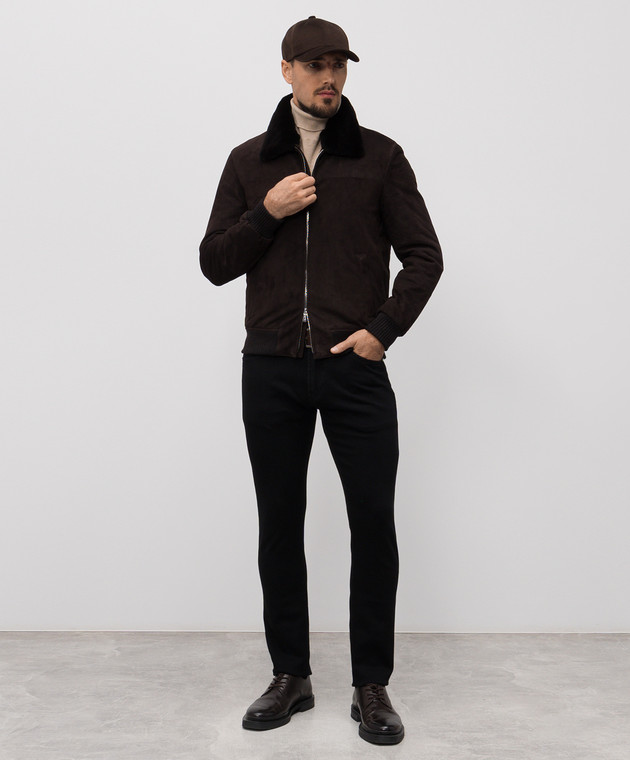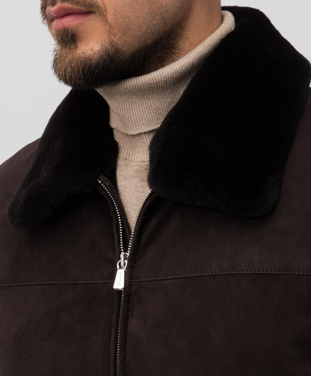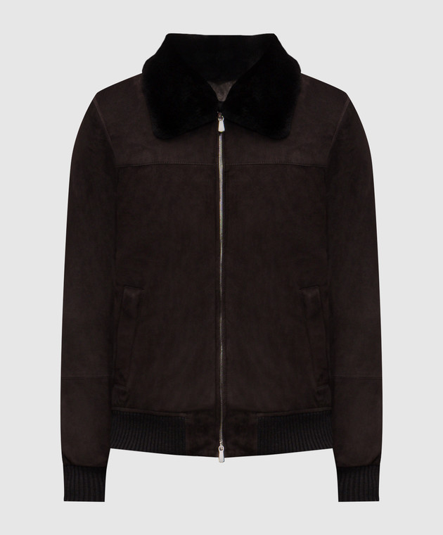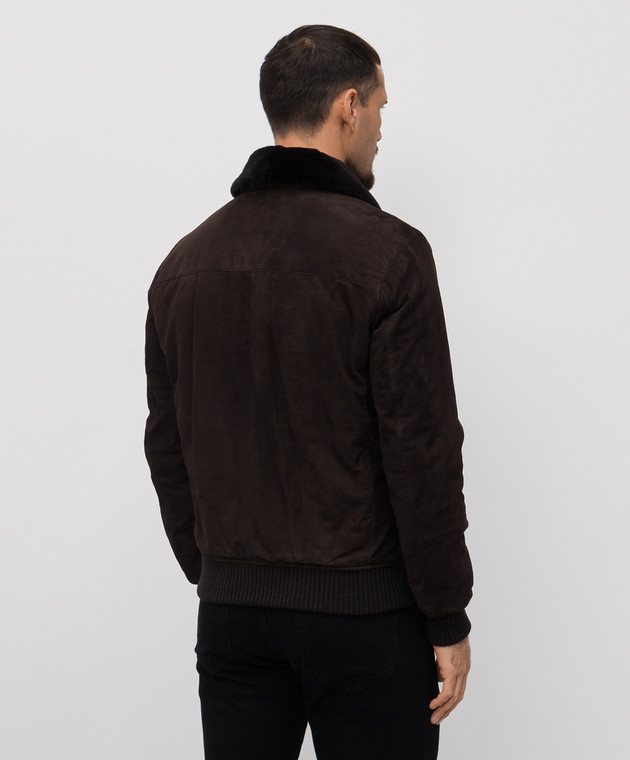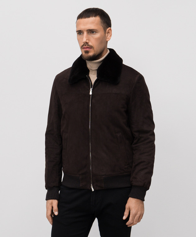 Коричнева замшева куртка з хутром норки