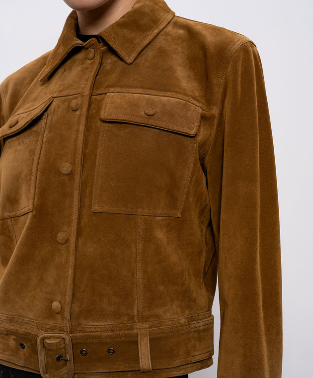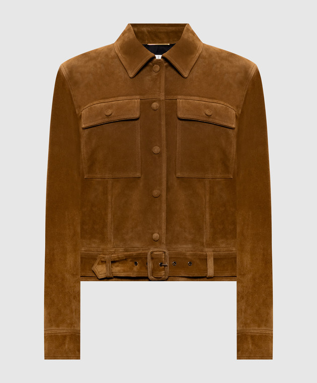Коричнева замшева куртка з поясом