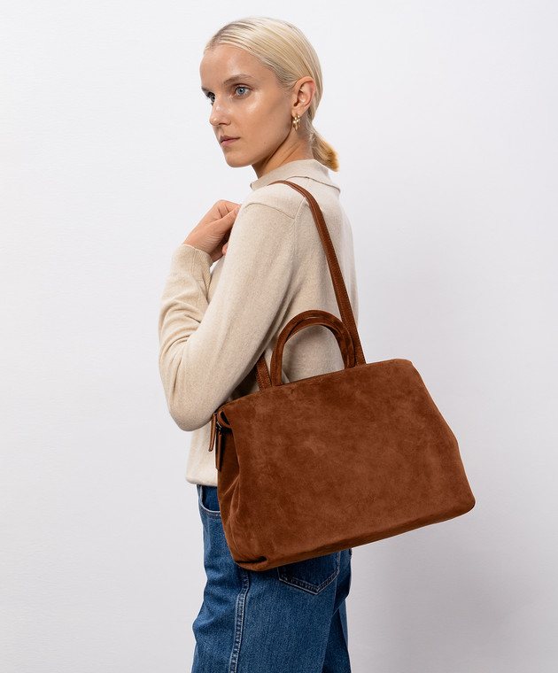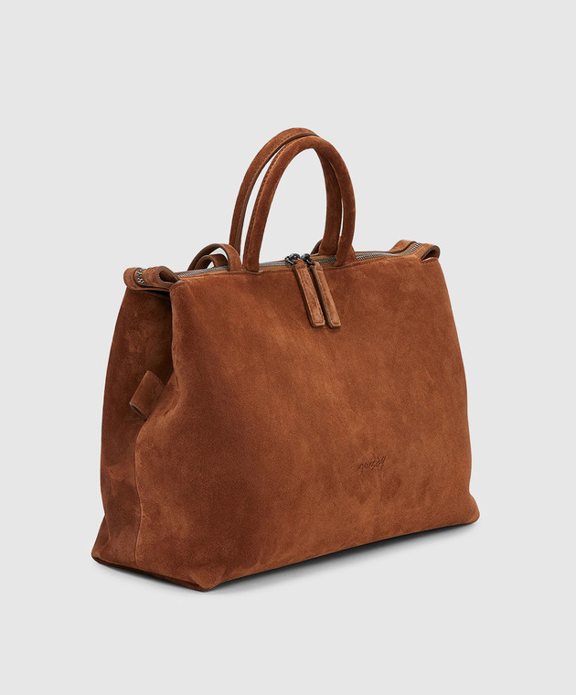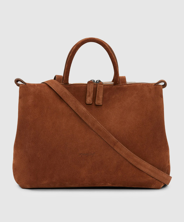 Коричнева замшева сумка з тисненням логотипа