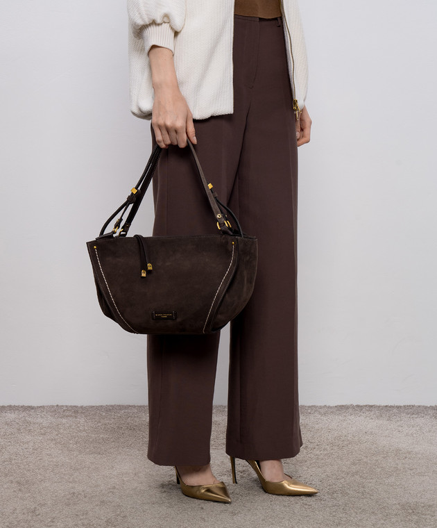 Коричнева замшева сумка-тоут BLOOM з патчем логотипа