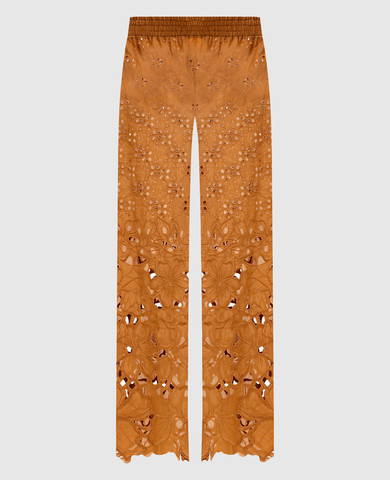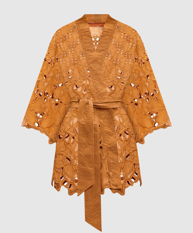 Коричневе ажурне кімоно з вишивкою