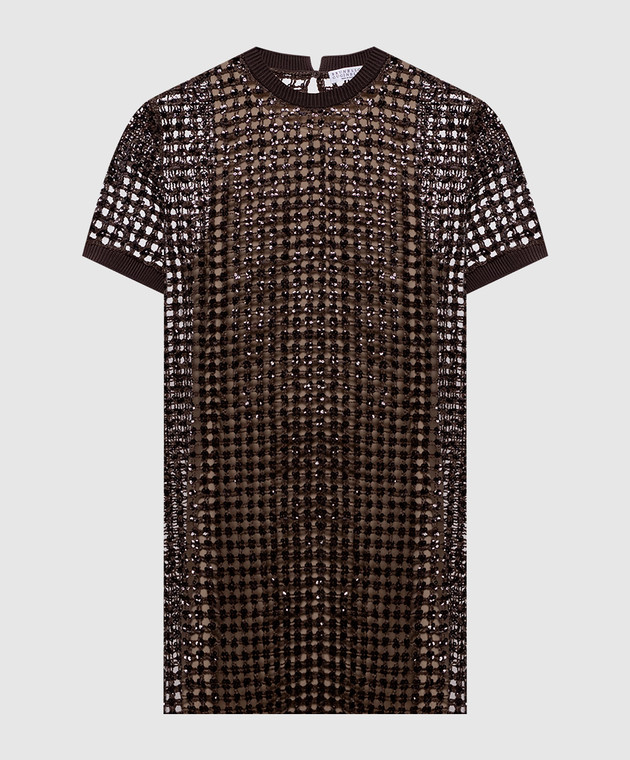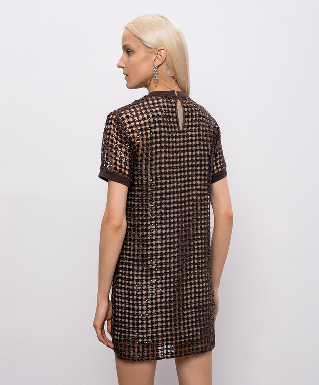Коричнева ажурна сукня із шовку та льону з паєтками