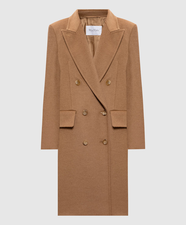 Коричневе двобортне пальто COSA з вовни верблюда