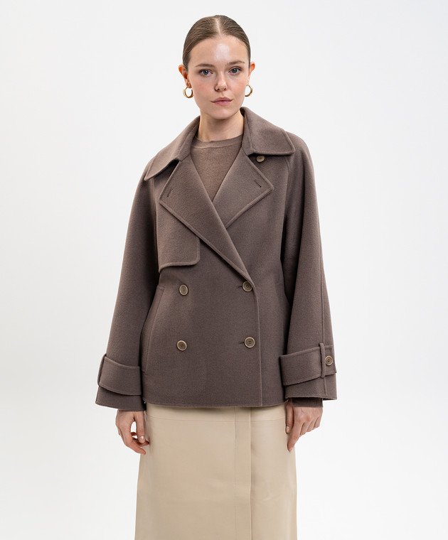 Коричневе двобортне пальто Marne з вовни і кашеміру