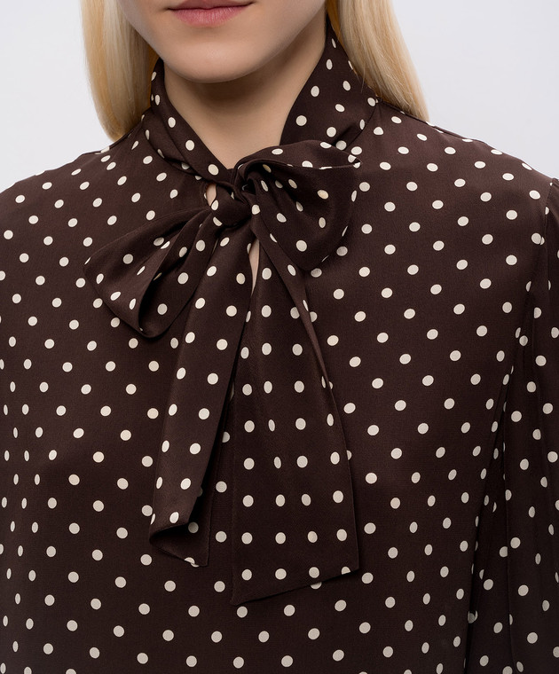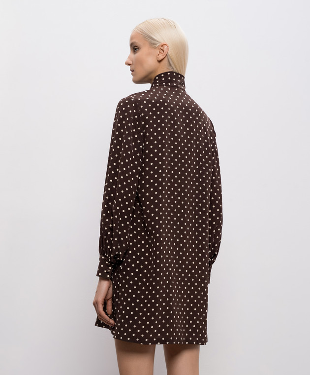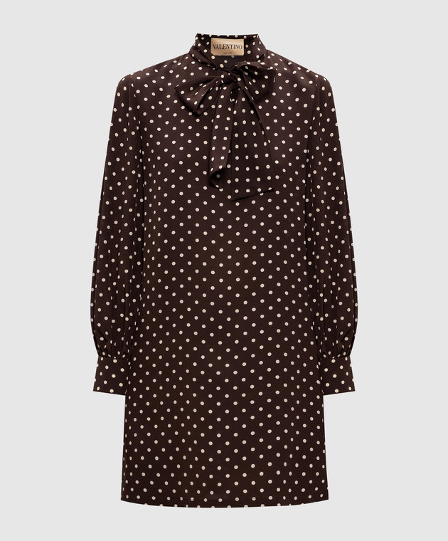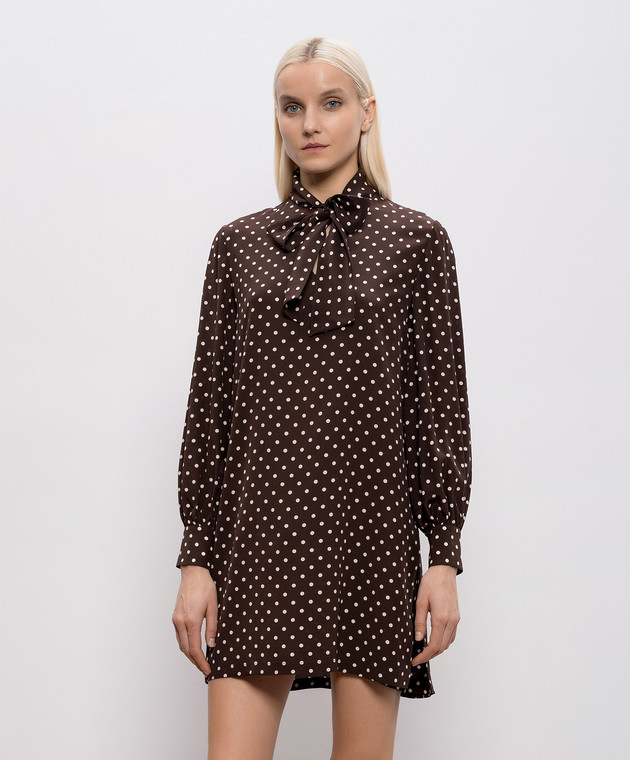 Коричнева сукня із шовку в горох