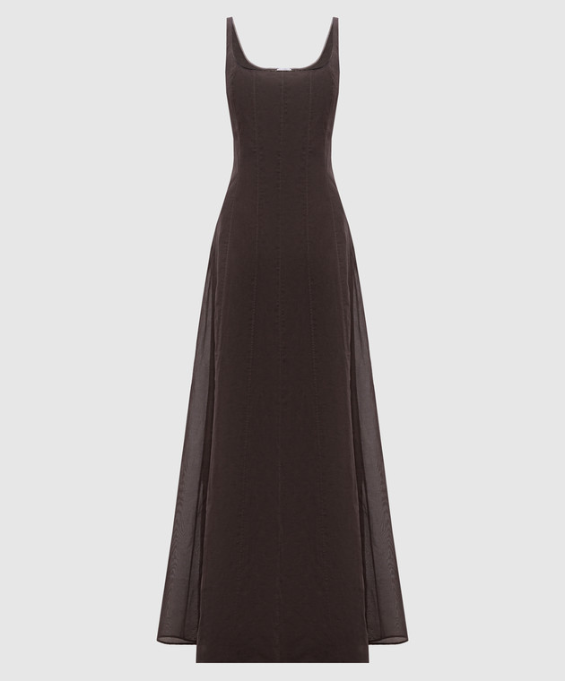 Коричнева сукня максі з ланцюжком моніль