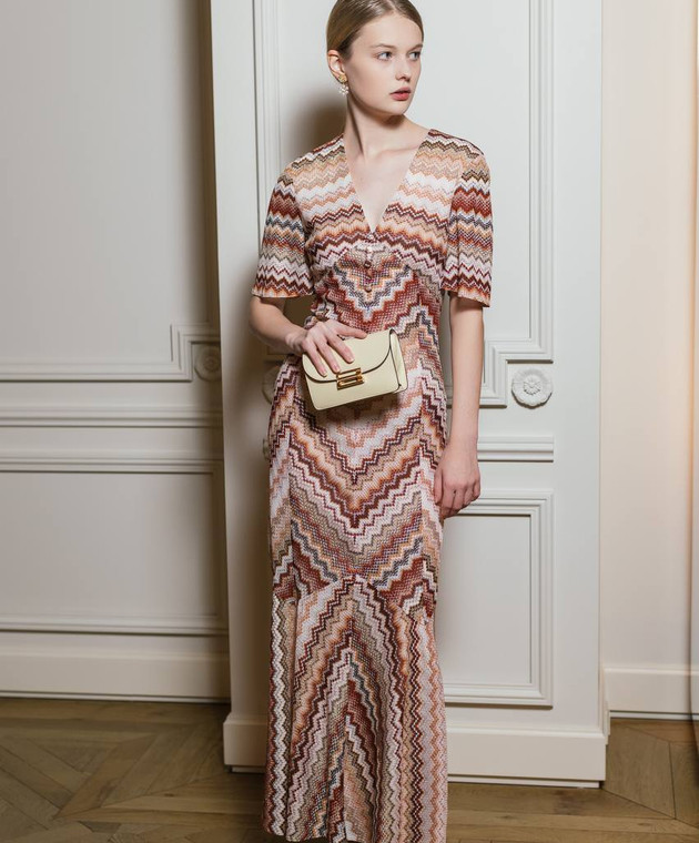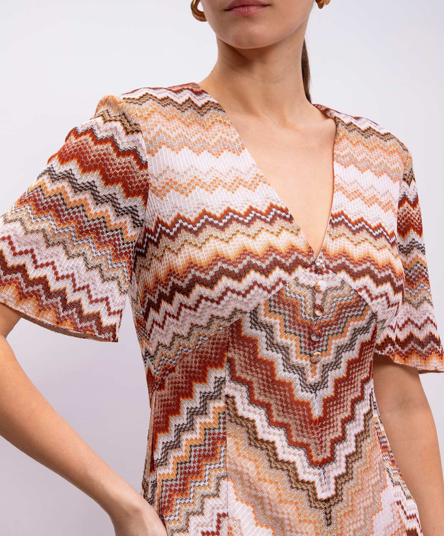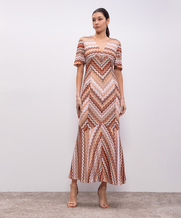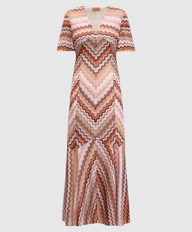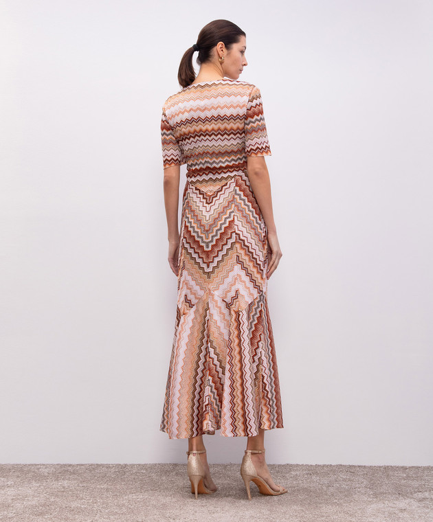 Коричнева сукня максі у візерунок з люрексом