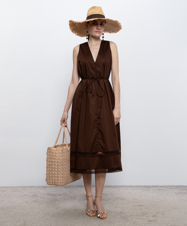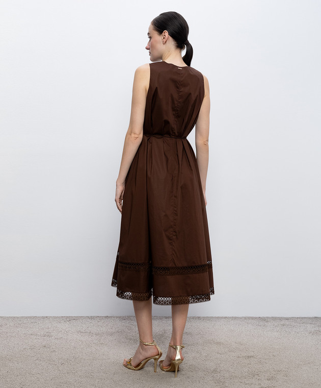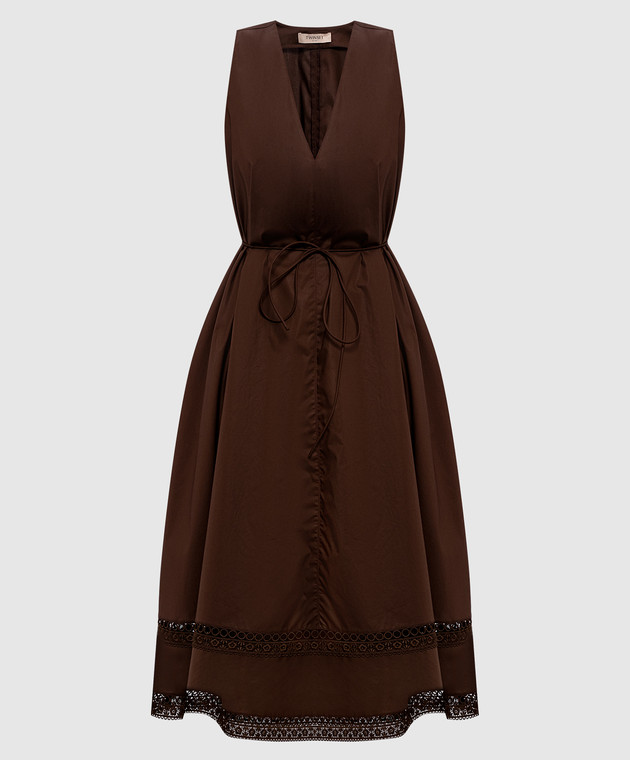 Коричнева сукня міді з мереживом