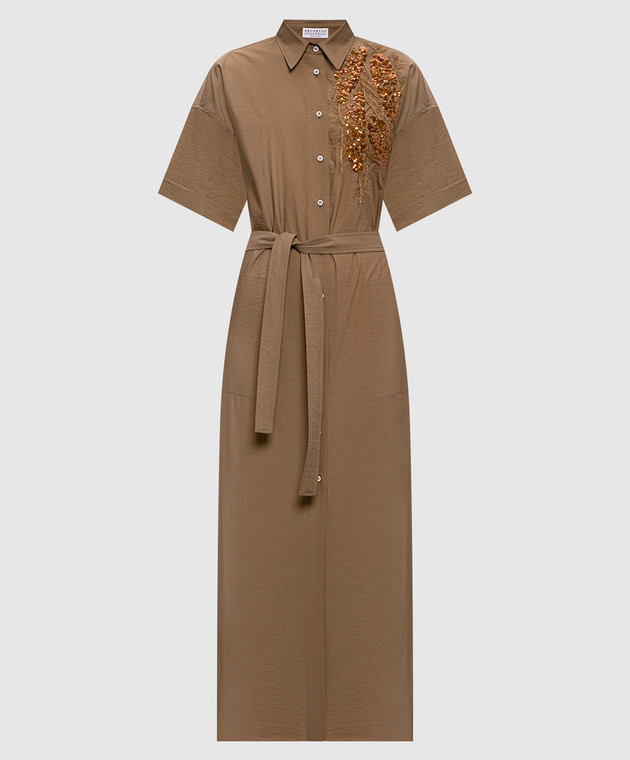 • Декор вишивка з паєтками, відвороти, розрізи в бокових швах, фігурний низ, бантова складка