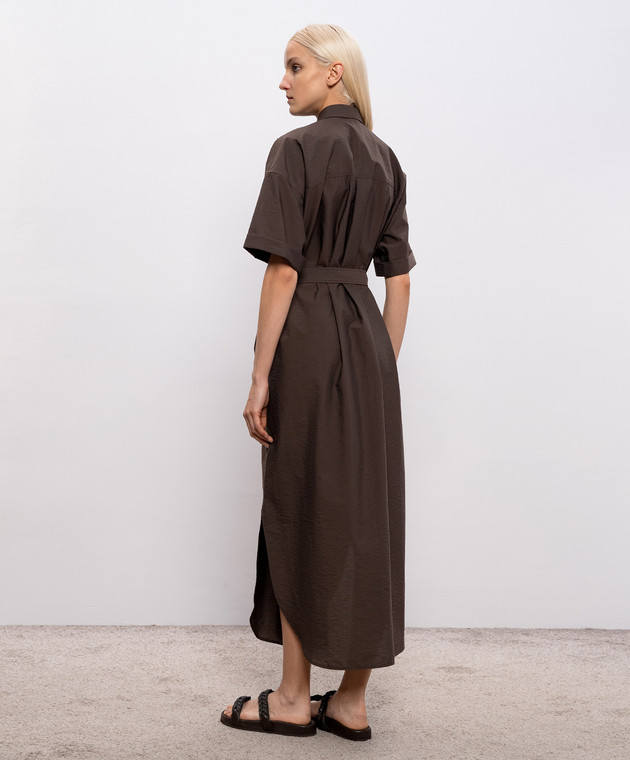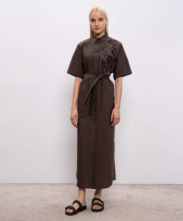 Коричнева сукня-сорочка з вишивкою з паєтками
