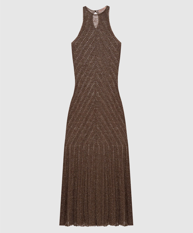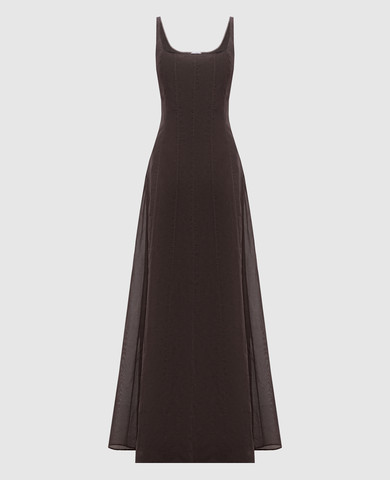 Коричнева сукня з льоном з люрексом