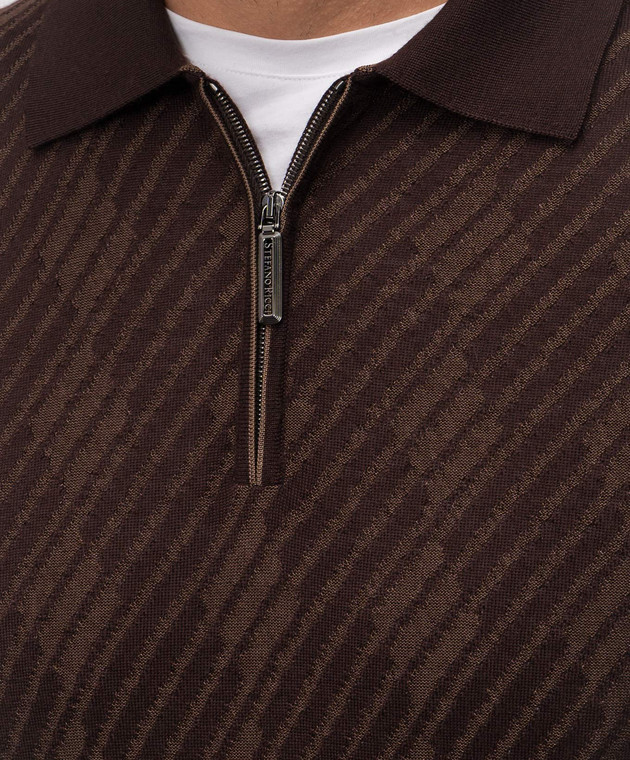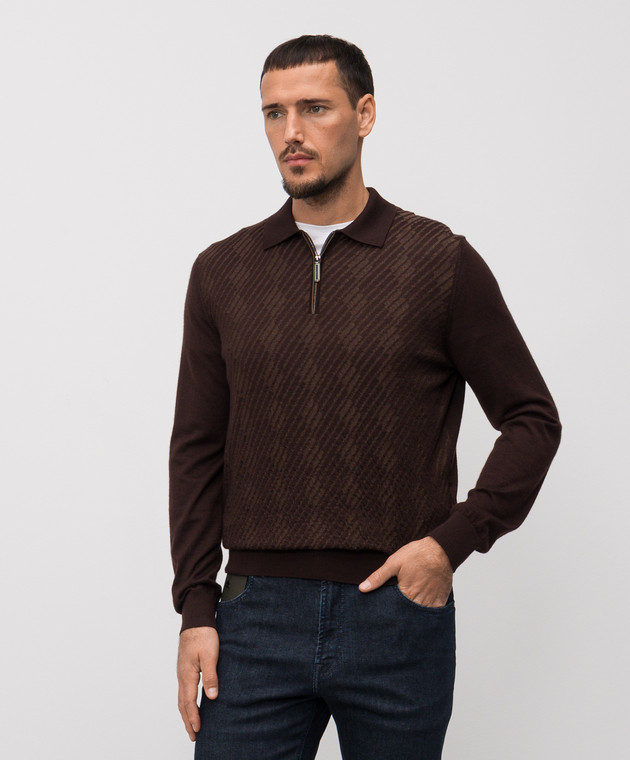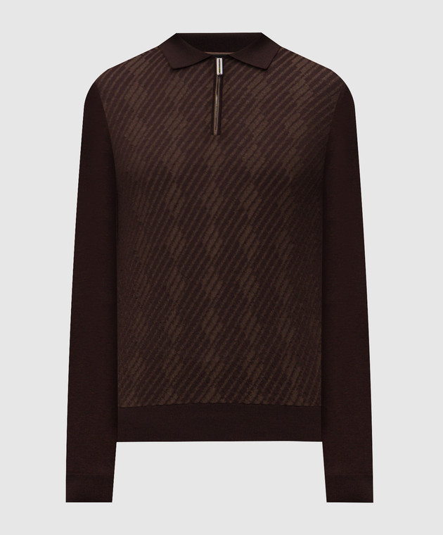 Коричневе поло з кашеміру та шовку у візерунок