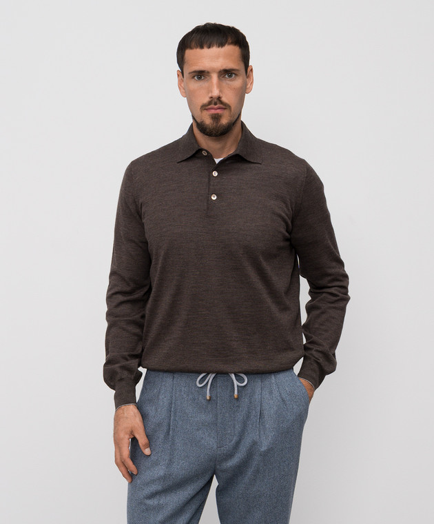 Brunello Cucinelli Коричневе поло з вовни і кашеміру M2400295
