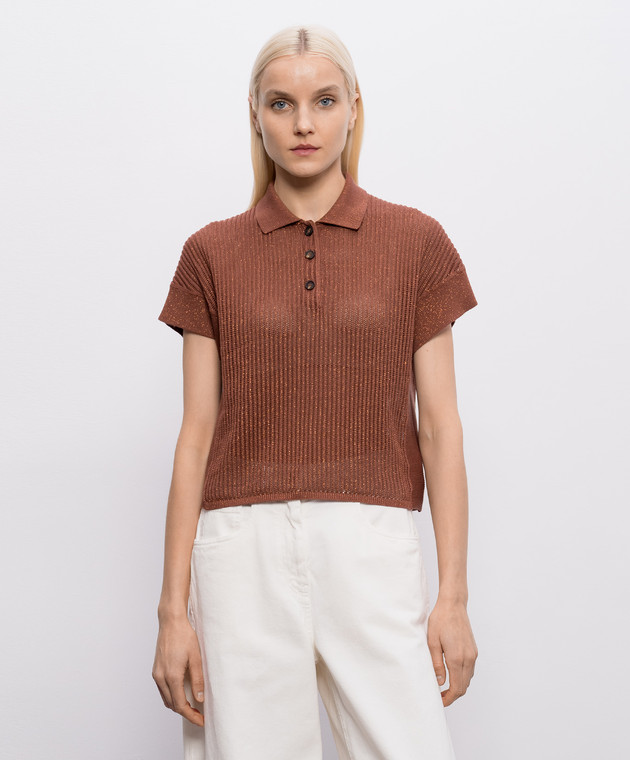 Коричневе поло з люрексом