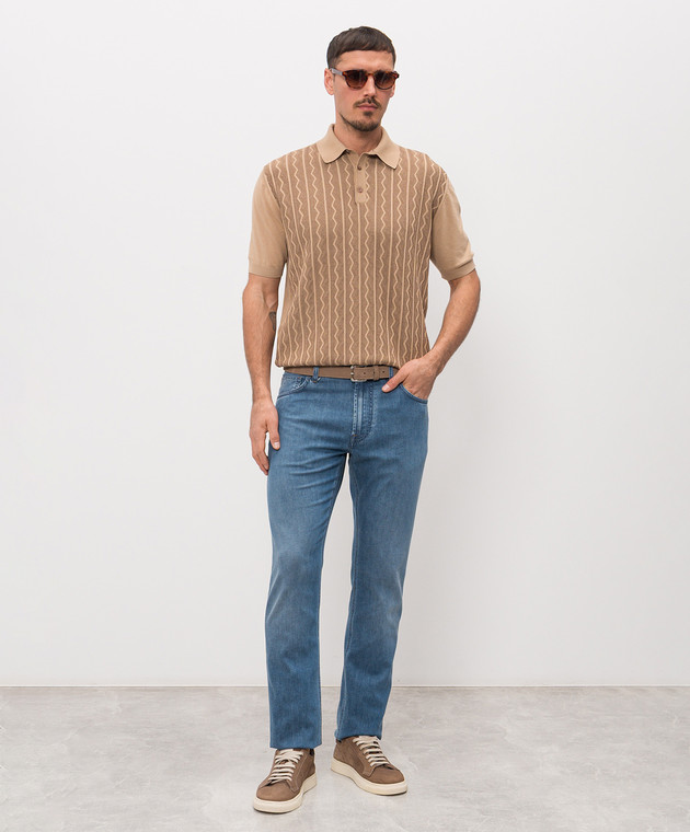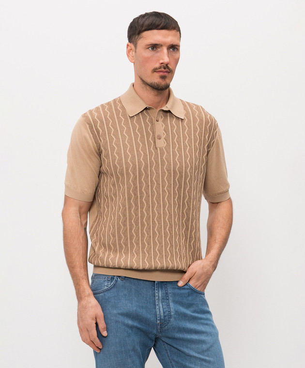 Коричневе поло в тканий візерунок