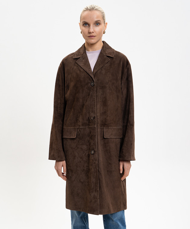 Коричневе замшеве пальто SMMORTENSIA