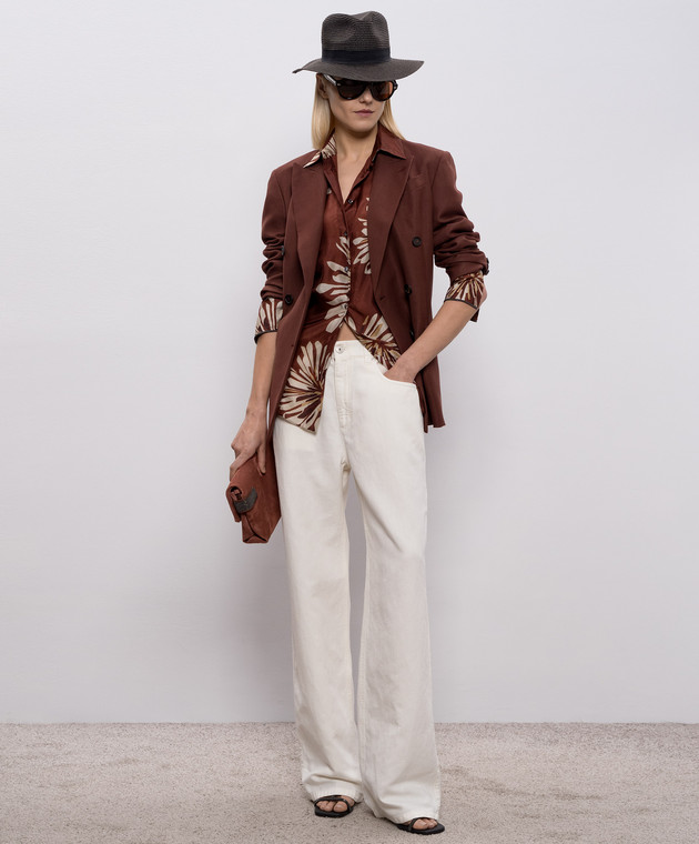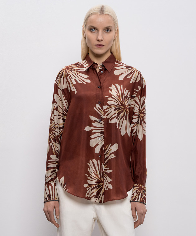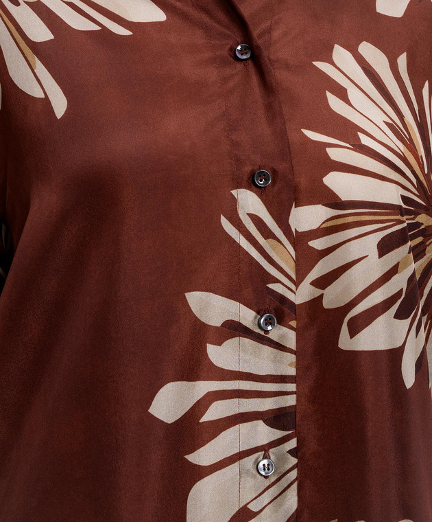 Коричнева блуза із шовку в принт