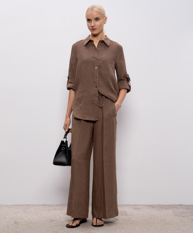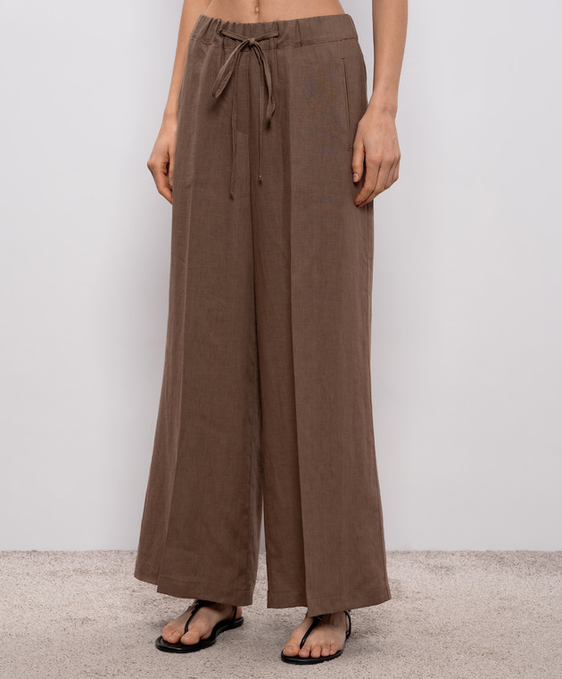 Коричневі штани з льону