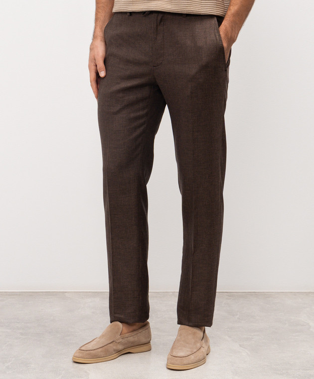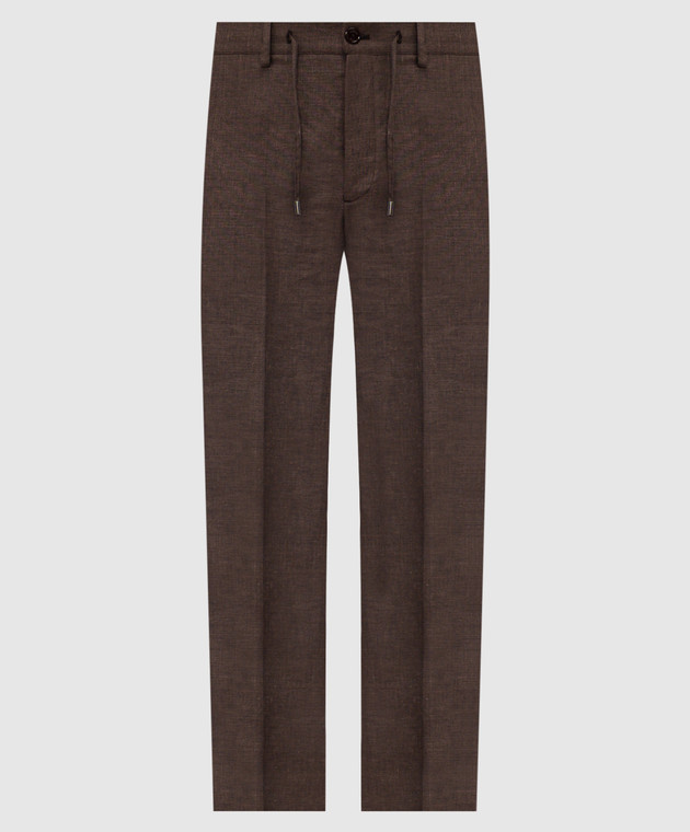 Коричневі штани з льону, вовни та шовку