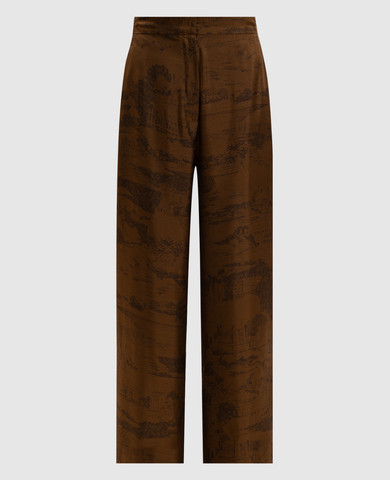 Коричневі штани з шовку в анімалістичний принт