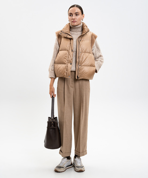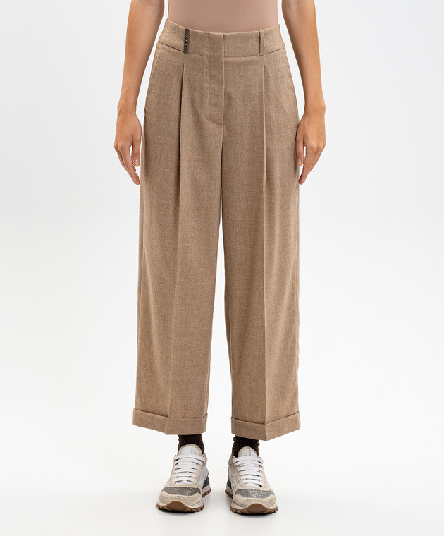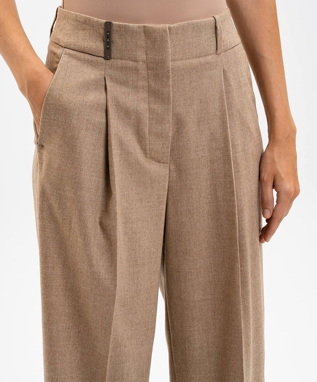 Коричневі штани з вовни і кашеміру з ланцюжком моніль