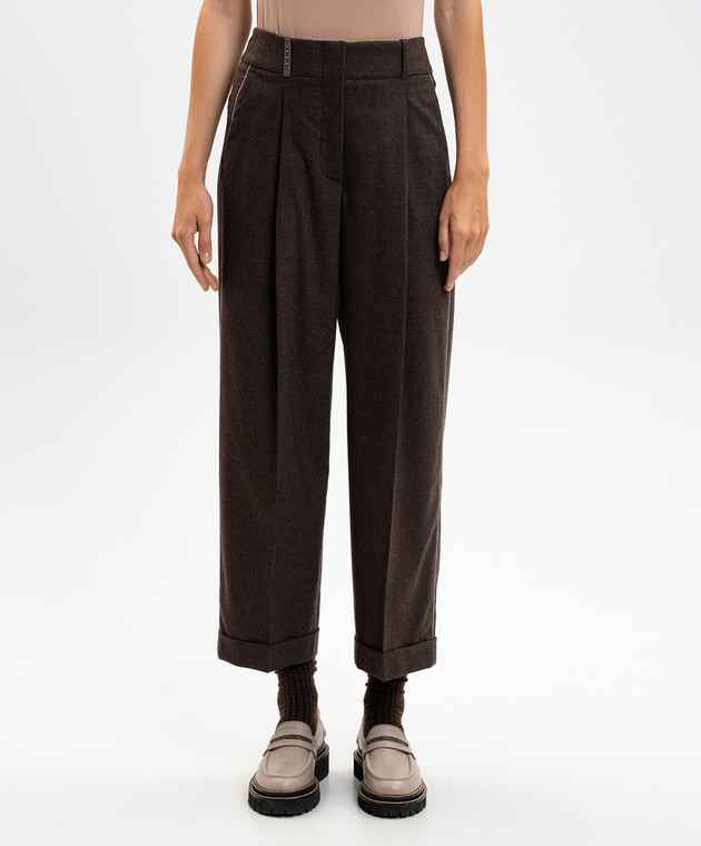 Коричневі штани з вовни і кашеміру з відворотами